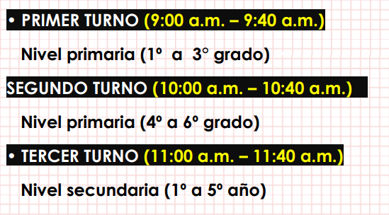 La hora de inicio de las evaluaciones se realizará puntualmente en las horas indicadas.