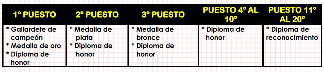 * Los delegados enviarán en una lista de PDF los datos de los alumnos ganadores especificando sus nombres, apellidos, grado y puesto para la elaboración de los diplomas.